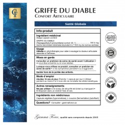 INGRÉDIENT MÉDICINAL : Chaque capsule contient : GRIFFE DU DIABLE (Harpagophytum) (extrait 40 :1)..... 187.5 mg (racine secondaire tubérisée) équivalent à 7 500 mg de racines séchées