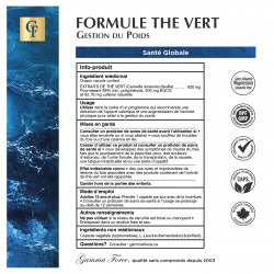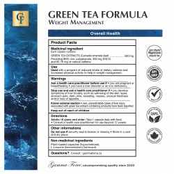 INGRÉDIENT MÉDICINAL : 1 capsule contient : Formule spécialisée d'EXTRAIT DE THÉ VERT (Camellia sinensis) (feuille) ..........................620 mg fournissant 98% min.polyphénols, 300 mg EGCG (Épigallocatéchin-3-gallate) et 82.76 mg de caféine naturelle