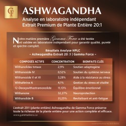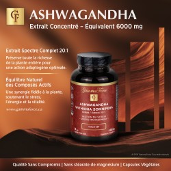 Chez Gamma Force, nous vous offrons un extrait de racine et de feuille d’ashwagandha avec un ratio 20:1, équivalant à 6 000 mg par capsule, idéal pour aider à augmenter l’énergie et la résistance au stress.